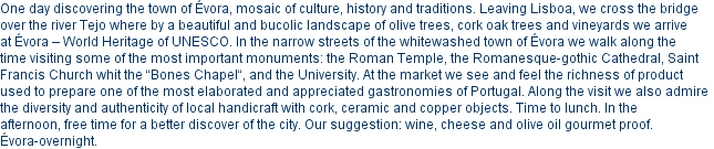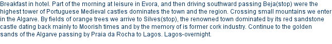 Day 2: Evora /Beja/Silves/Lagos (+/-250Km/155.3 miles)