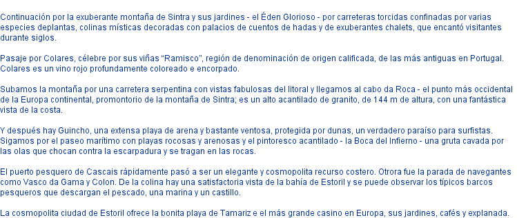 Sintra, Palacio de Pena, Cabo de Roca, Cascais, Estoril