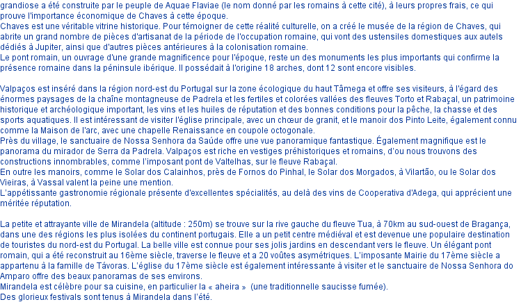 Tras-os-Montes - Chaves, Valpaços, Mirandela - journée compléte