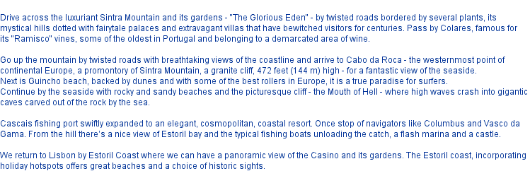 Sintra, Pena palace, Roca cape, Cascais, Estoril