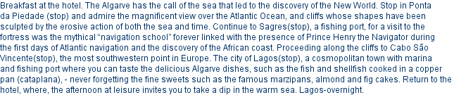 Day 10: Lagos/Ponta da Piedade/ Sagres/Cabo de S. Vicente/ Lagos (+/-140 km/87 miles)