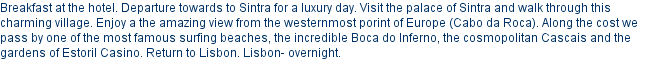 Day 7: Lisboa/Sintra/Cabo da Roca/Cascais/Estoril (+/- 90 km)