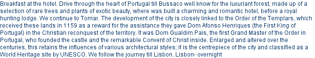 Day 6: Urgeiriça/Bussaco/Tomar/Lisboa (+/- 365 km)