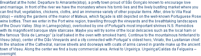 Day 5: Oporto/Amarante/Vila Real/Douro Valley/Lamego/Viseu/Urgeiriça (+/-254Km/157.8 miles)