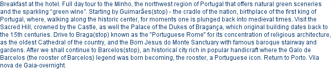 Day 4: Oporto/ Guimarães/ Braga/ Barcelos/Oporto (+/-178Km/110.6 miles)