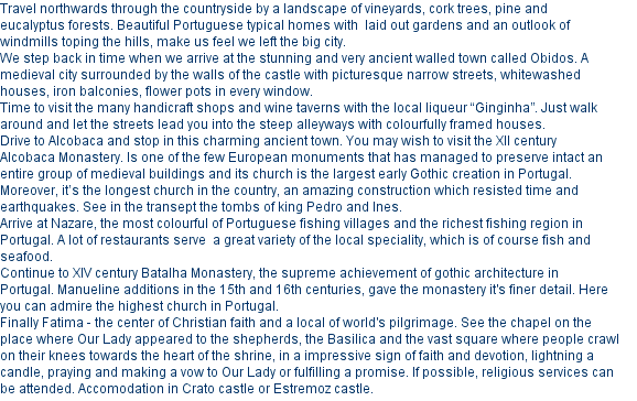 Day 1 - Obidos, Alcobaça, Nazaré, Batalha, Fatima, Estremoz